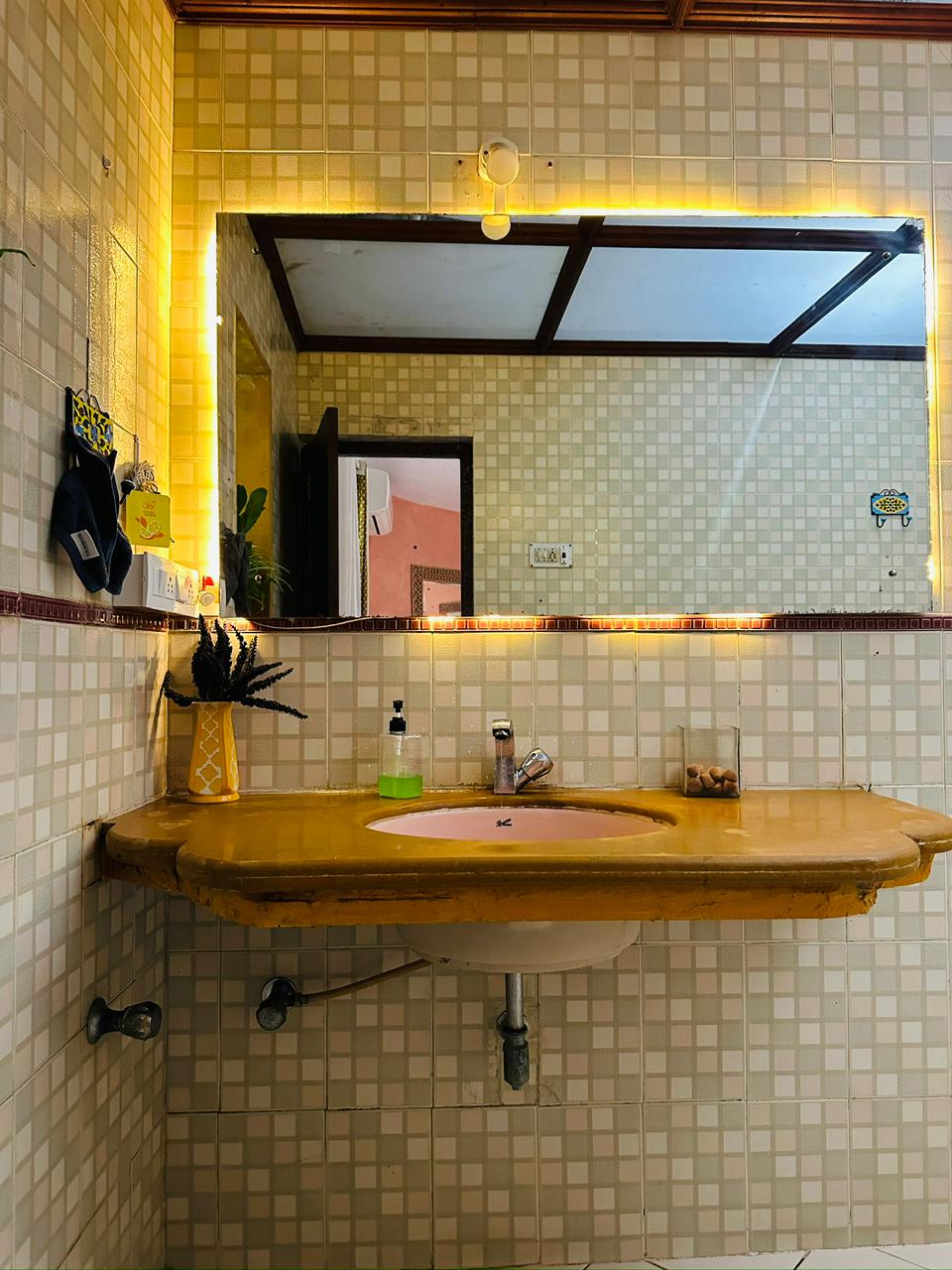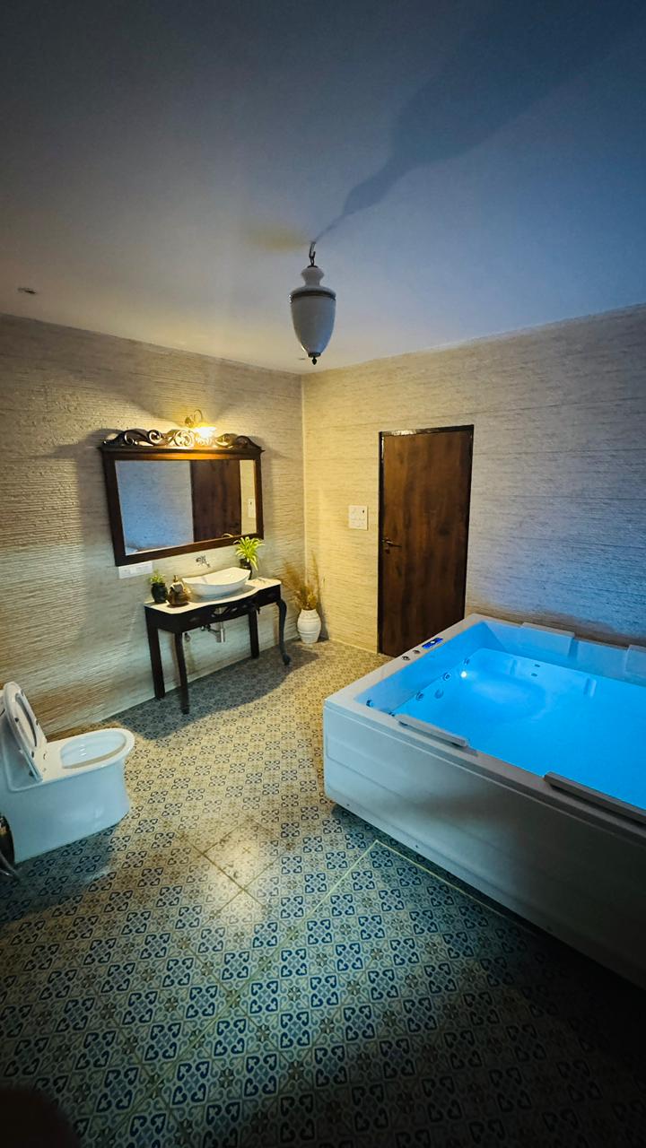 The misty bedroom offers complete comfort and privacy with a spacious king-size bed and soothing interiors. Large windows provide a refreshing garden view and ample natural light. An attached private washroom inside the room ensures convenience, making it ideal for a peaceful and relaxing stay.